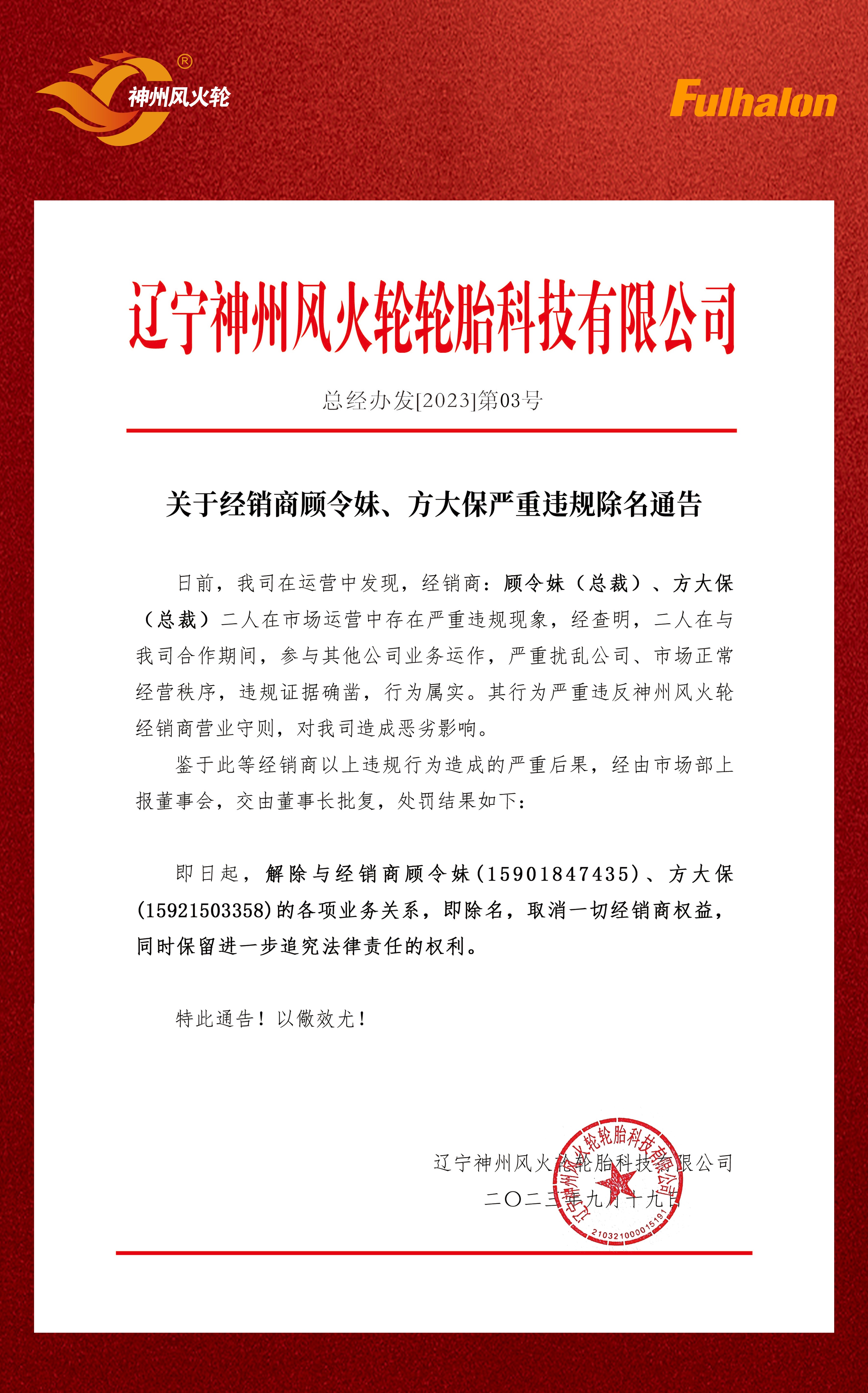 關(guān)于神州風(fēng)火輪經(jīng)銷商嚴(yán)重違規(guī)違紀(jì)的處理通告!